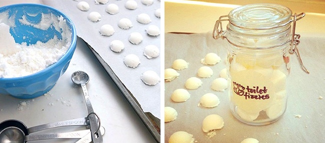 To clean and freshen a toilet bowl, you can also make ’cleaning bombs’. Throw 1-2 bombs into the toilet bowl to help clean it and produce a pleasant smell.