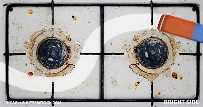You can remove oil stains from the stove using an ordinary eraser. In fact, professional cleaning services often use this trick.