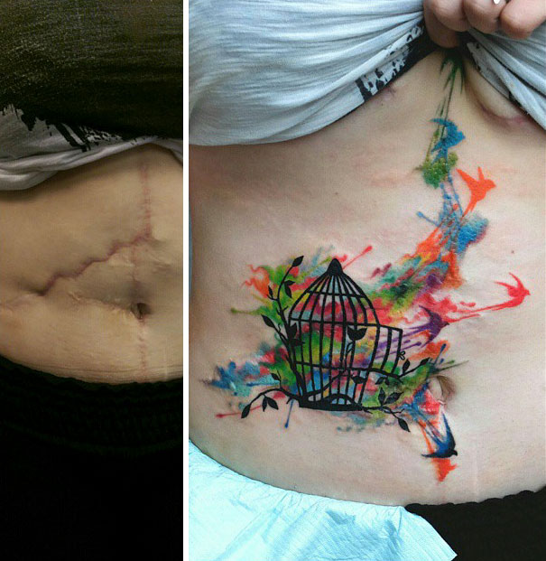 Check out this list we compiled to see for yourself what we mean. Some of them conceal the scar tissue completely, while others cleverly interact with them, turning what was once something considered unsightly into something truly beautiful. Don’t forget to vote for your favorite!