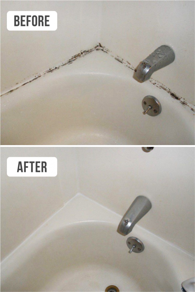 Take some cotton wool and make small balls with it which are approximately one centimetre in diameter. Dip them in a bleach, place them on the mold and leave it all over night. In the morning, remove any remaining mold with a toothbrush.