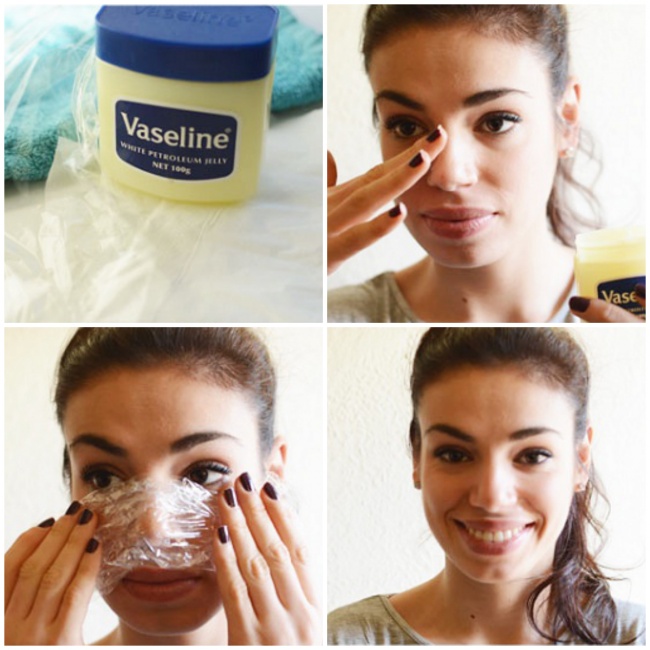 The best time to use this trick is right after the shower because the heat from the water will have opened your pores. Begin by applying Vaseline to the affected area that needs to be treated. Once you have finished with it, place the plastic wrap over the Vaseline. With the wrap still in place, apply a hot towel and let it sit until it cools back down to room temperature. Then use a tissue to remove any excess Vaseline from your face, and gently squeeze the skin where the blackheads are clogging your pores to remove them. The dirt should be pushed out very easily. Finally, wipe a cotton pad soaked in lotion over your skin.