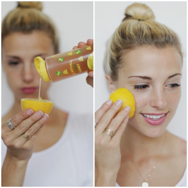Cut a lemon in half and pour enough honey to cover the cut surface of the lemon. Then sprinkle the lemon half with two pinches of sugar (it is better to use cane sugar), and gently massage the problem areas with this natural ’sponge’ in a circular motion.